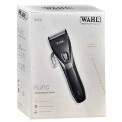 Η επαγγελματική κουρευτική μηχανή WAHL PROFESSIONAL KUNO, κατασκευασμένη στη Γερμανία, είναι ένα ισχυρό εργαλείο με brushless DC μοτέρ 7200 στροφών/λεπτό που προσφέρει σταθερή απόδοση και ακριβή αποτελέσματα. Διαθέτει αποσπώμενη πλενόμενη λεπίδα Diamond Blade με επίστρωση υψηλής ποιότητας άνθρακα για καλύτερη απόδοση και μεγαλήτερη διάρκεια ζωής, ιδανική για blending και κούρεμα κοντά στο δέρμα. Με πλάτος κοπής 46 mm και ρυθμιζόμενο μήκος κοπής από 0.8 έως 13 mm, προσφέρει ευελιξία και έλεγχο. Περιλαμβάνει 6 μαγνητικά χτενάκια και διαθέτει αυτονομία 60 λεπτών με γρήγορη φόρτιση σε 100 λεπτά. Η λεπτή, εργονομική κατασκευή της και το ελαφρύ βάρος των 210 g την καθιστούν ιδανική για επαγγελματική χρήση.